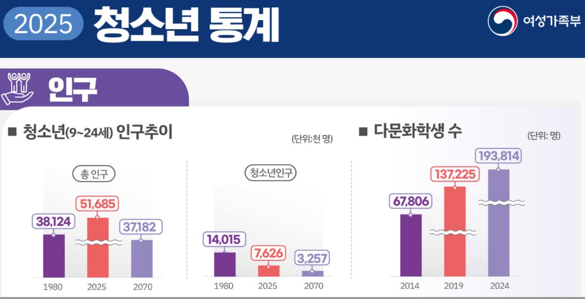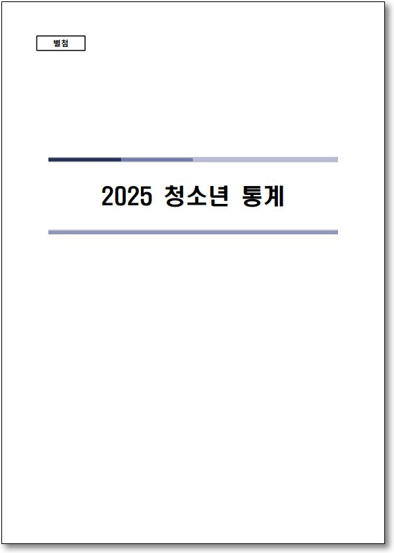 상단의 이미지를 클릭하시면 여성가족부의「2025 청소년 통계」원문을 확인하실 수 있습니다.