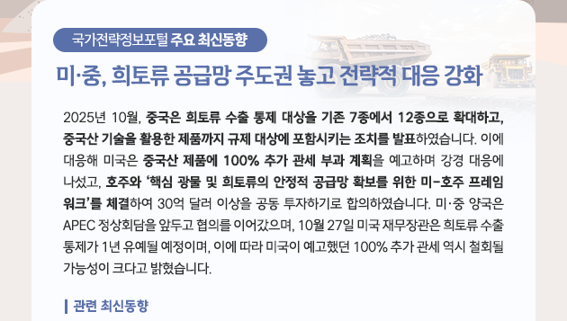 [국가전략 뉴스레터 2025-11월호] 미·중, 희토류 공급망 주도권 놓고 전략적 대응 강화