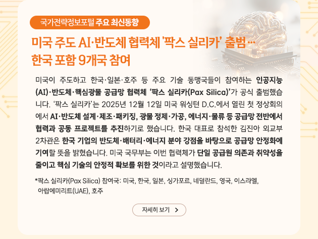 [국가전략 뉴스레터 2026-1월호] 미국 주도 AI·반도체 협력체 '팍스실리카’ 출범…한국 포함 9개국 참여
