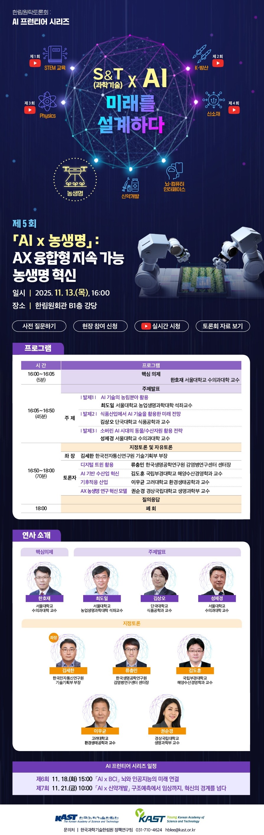 [제244회 한림원탁토론회 : AI 프런티어 시리즈] AI x 농생명 : AX 융합형 지속 가능 농생명 혁신