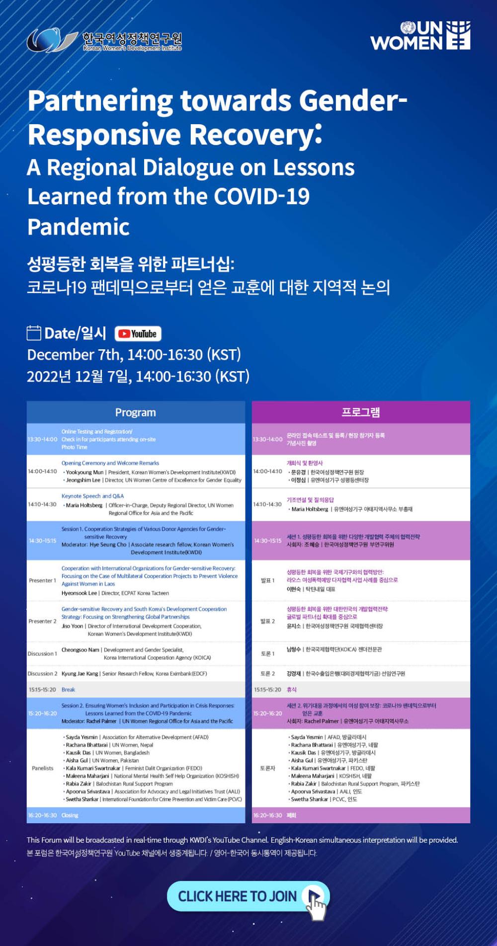 [제14차 개발과 젠더에 관한 아태개발협력포럼] 성평등한 회복을 위한 파트너십 : 코로나19 팬데믹으로부터 얻은 교훈에 대한 지역적 논의