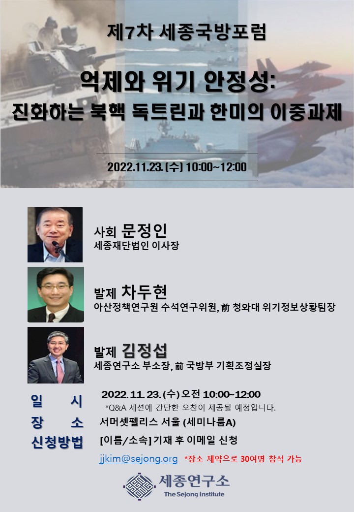 [제7차 세종국방포럼] 억제와 위기 안정성 : 진화하는 북핵 독트린과 한미의 이중과제