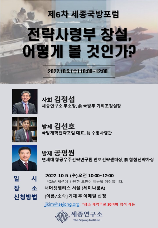 [제6차 세종국방포럼] 전략사령부 창설, 어떻게 볼 것인가?
