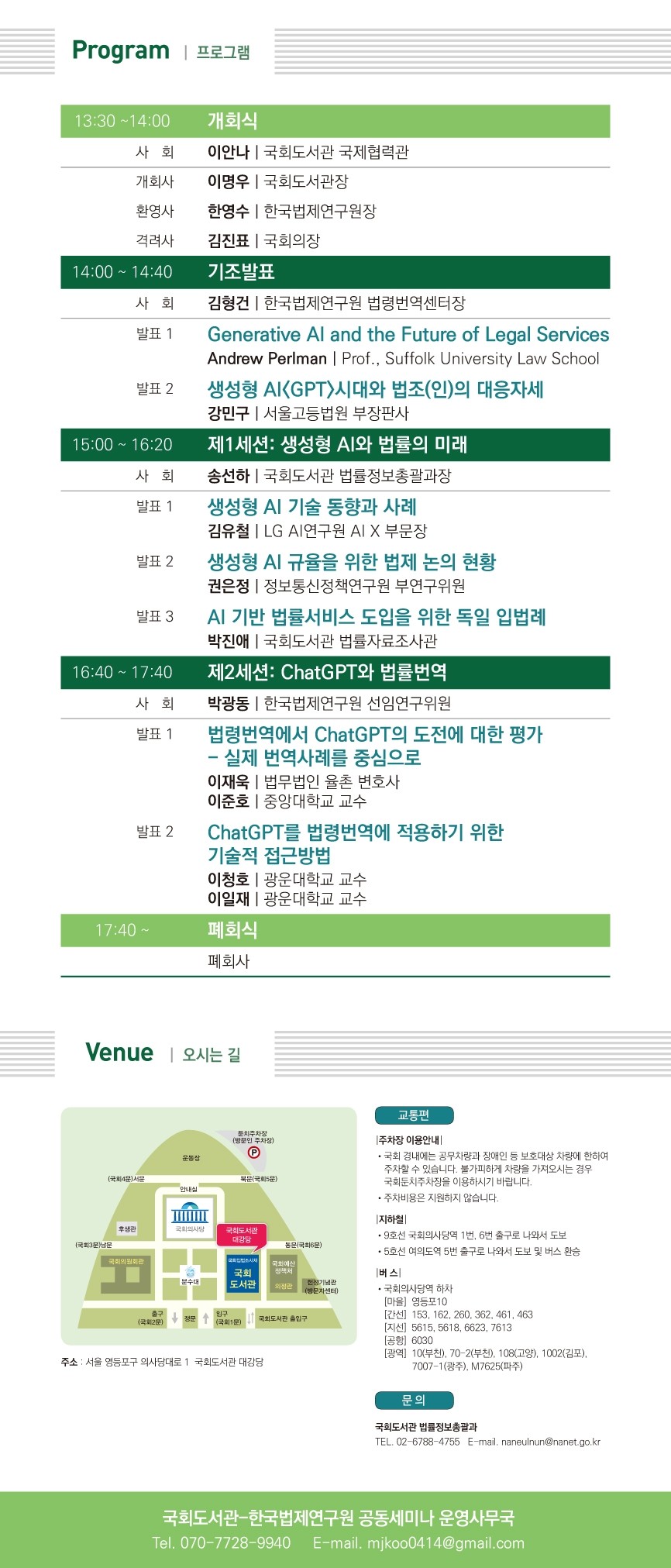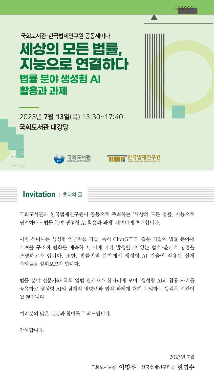 [국회도서관-한국법제연구원 공동세미나] 세상의 모든 법률, 지능으로 연결하다: 법률 분야 생성형 AI 활용과 과제