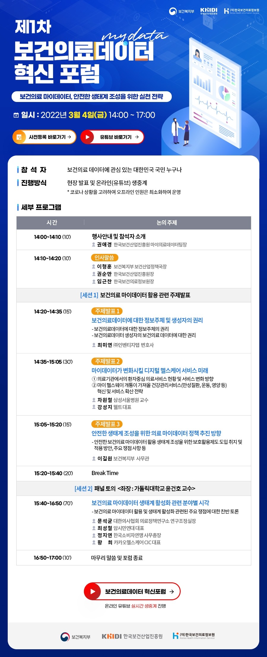 [2022년 제1차 보건의료데이터 혁신포럼] 보건의료 마이데이터, 안전한 생태계 조성을 위한 실천 전략