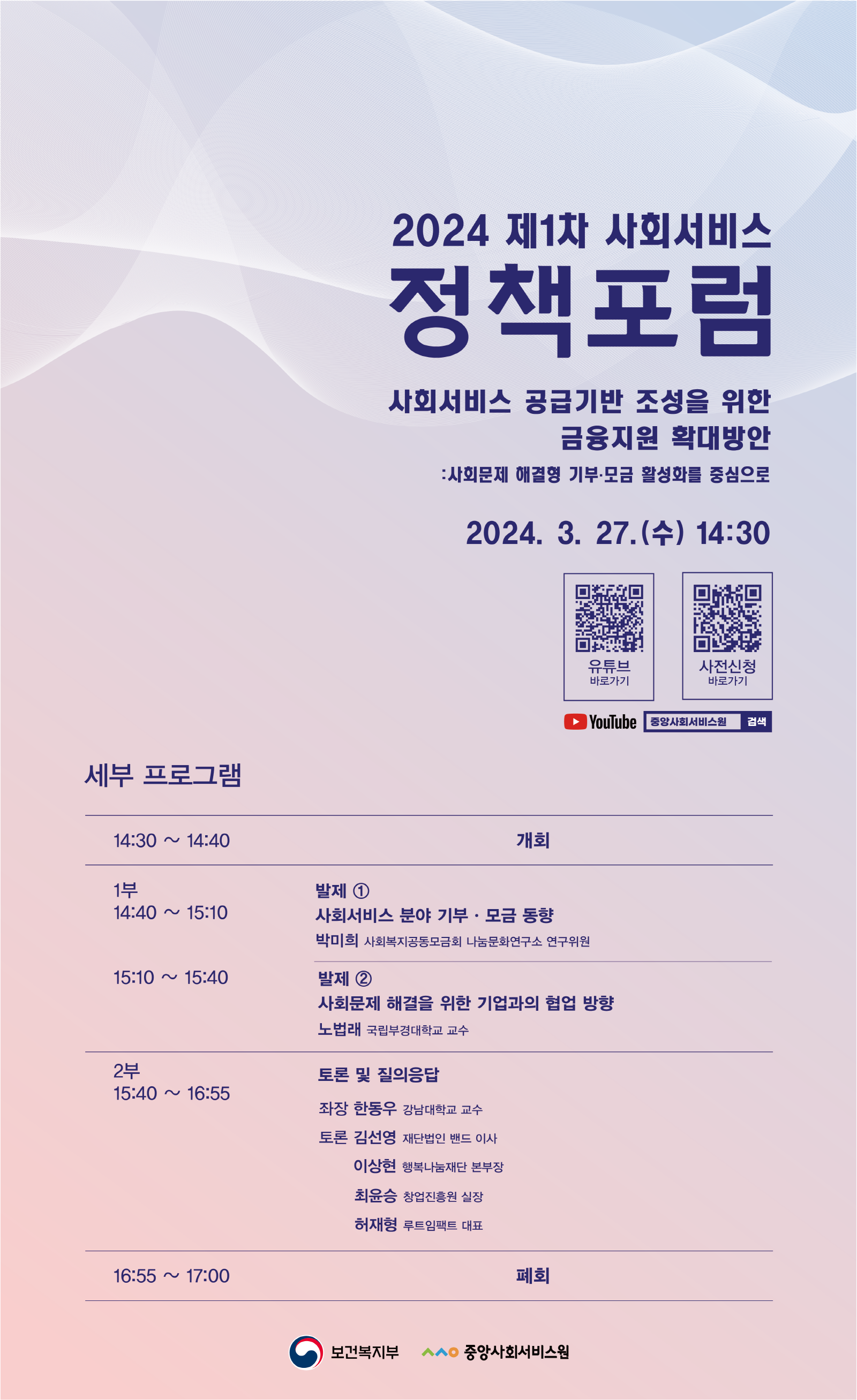 [2024년 제1차 사회서비스 정책포럼] 사회서비스 공급기반 조성을 위한 금융지원 확대방안 : 사회문제 해결형 기부·모금 활성화를 중심으로