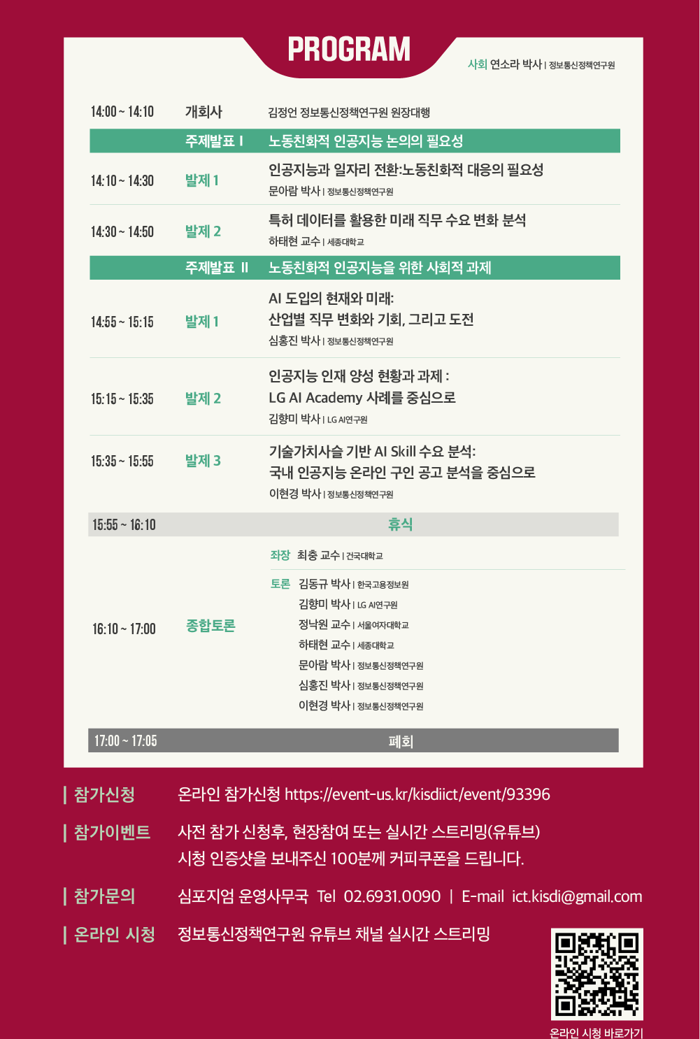 [2024 ICT기반 사회현안 해결방안 연구 심포지엄] 노동친화적 인공지능의 가치와 사회적 과제 심포지엄