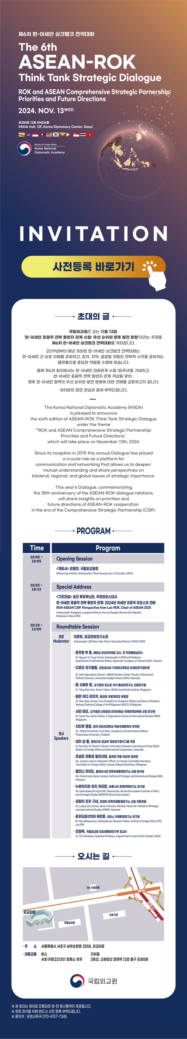 [제5차 한-아세안 싱크탱크 전략대화] 한국 인도태평양 전략과 아세안: 포괄적 전략적 파트너십을 향해