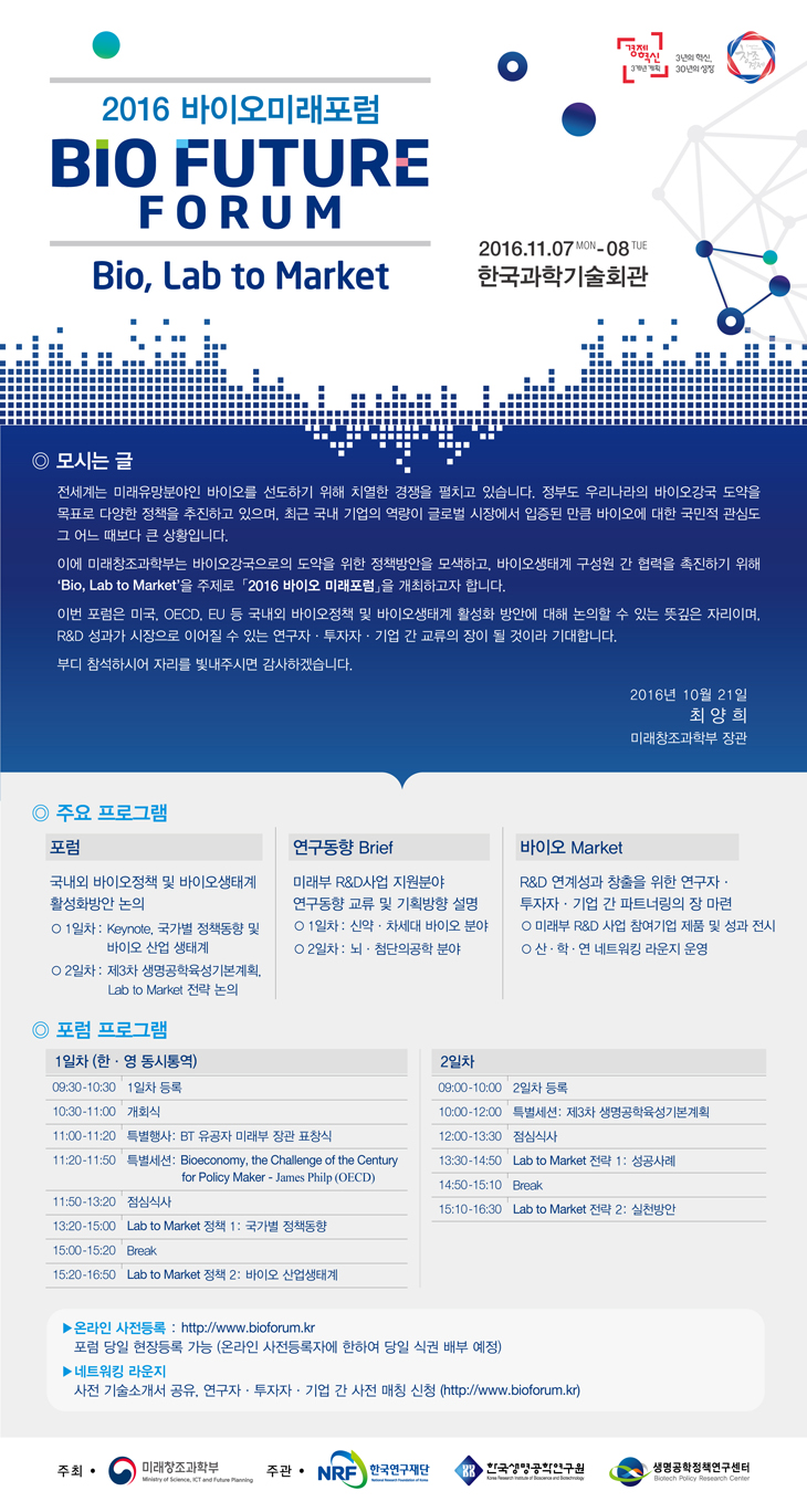 ▶ 2016년 바이오미래 포럼 개최 (2016.11.07.) / 미래창조과학부