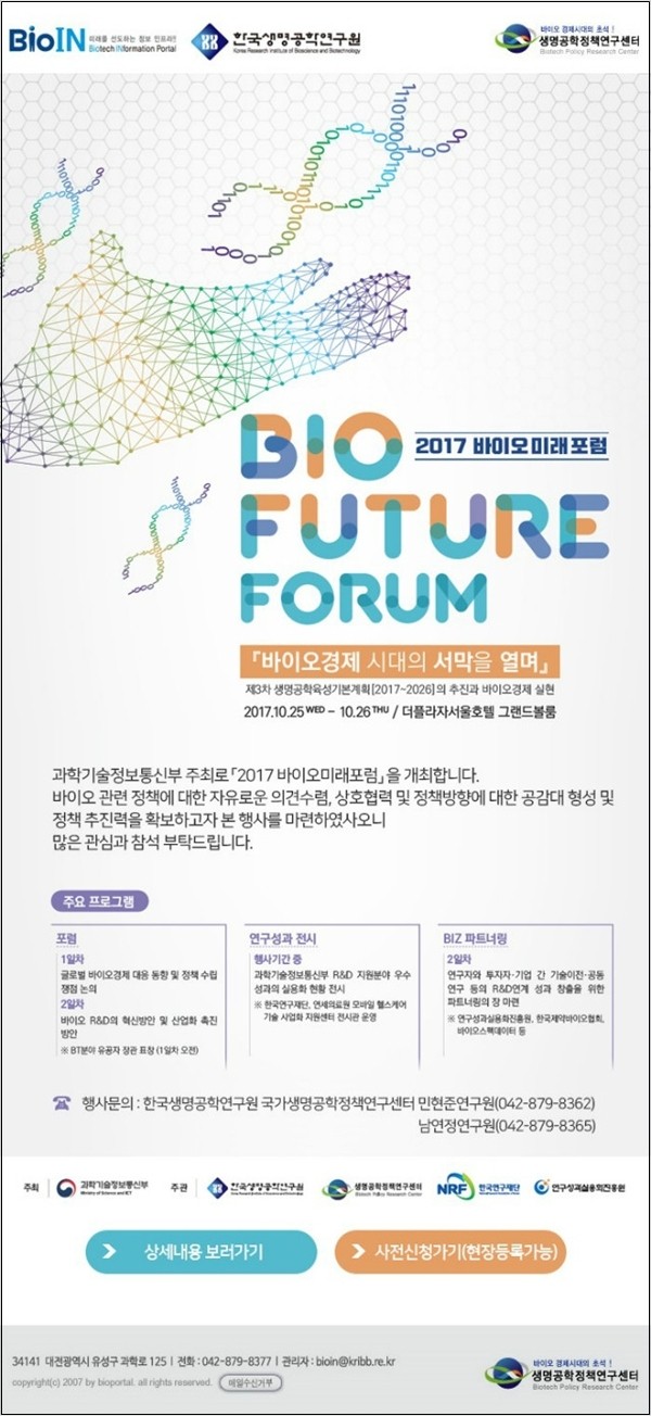 ▶ [BioINpro] 2017년 바이오미래포럼을 통해 바라본 주요 이슈 (2017.12.) / 한국생명공학연구원 생명공학정책연구센터