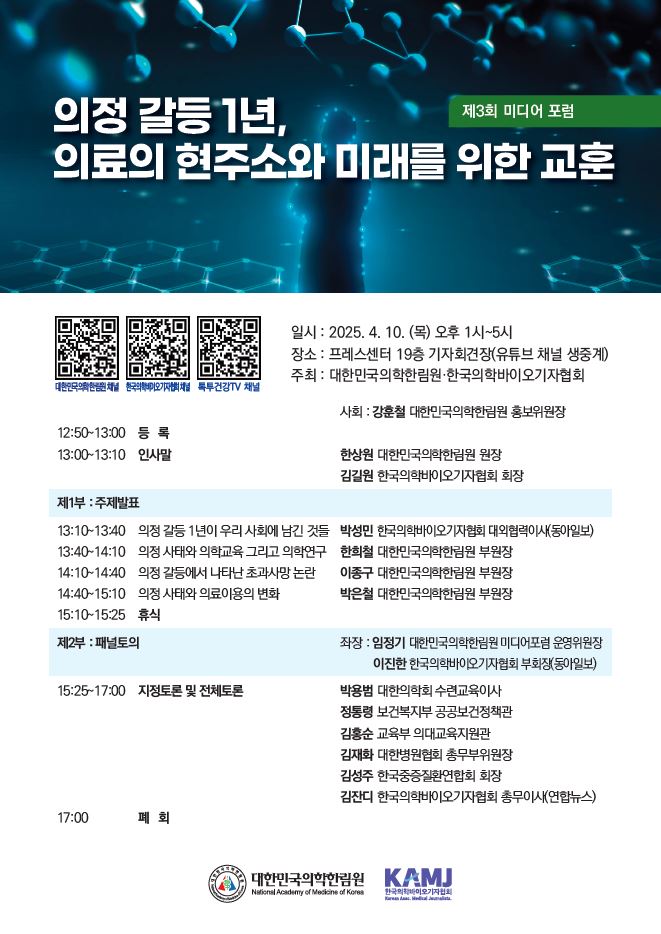 [제3회 미디어포럼] 의정 갈등 1년, 의료의 현주소와 미래를 위한 교훈