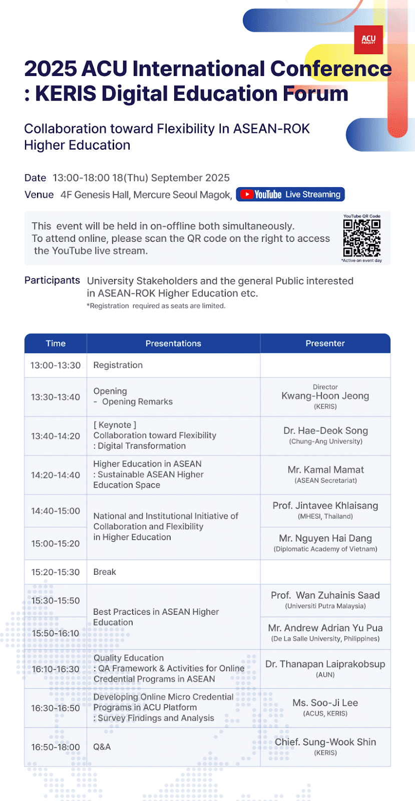 [2025 ACU International Conference·제178회 KERIS 디지털교육 포럼] Collaboration toward Flexibility in ASEAN-ROK Higher Education (한-아세안 고등교육의 유연성을 위한 협력)