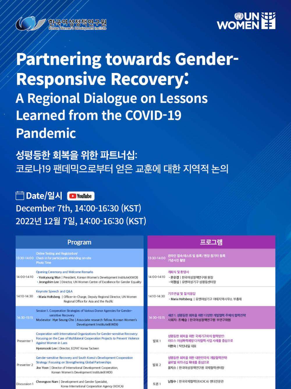 [제14차 개발과 젠더에 관한 아태개발협력포럼] 성평등한 회복을 위한 파트너십 : 코로나19 팬데믹으로부터 얻은 교훈에 대한 지역적 논의
