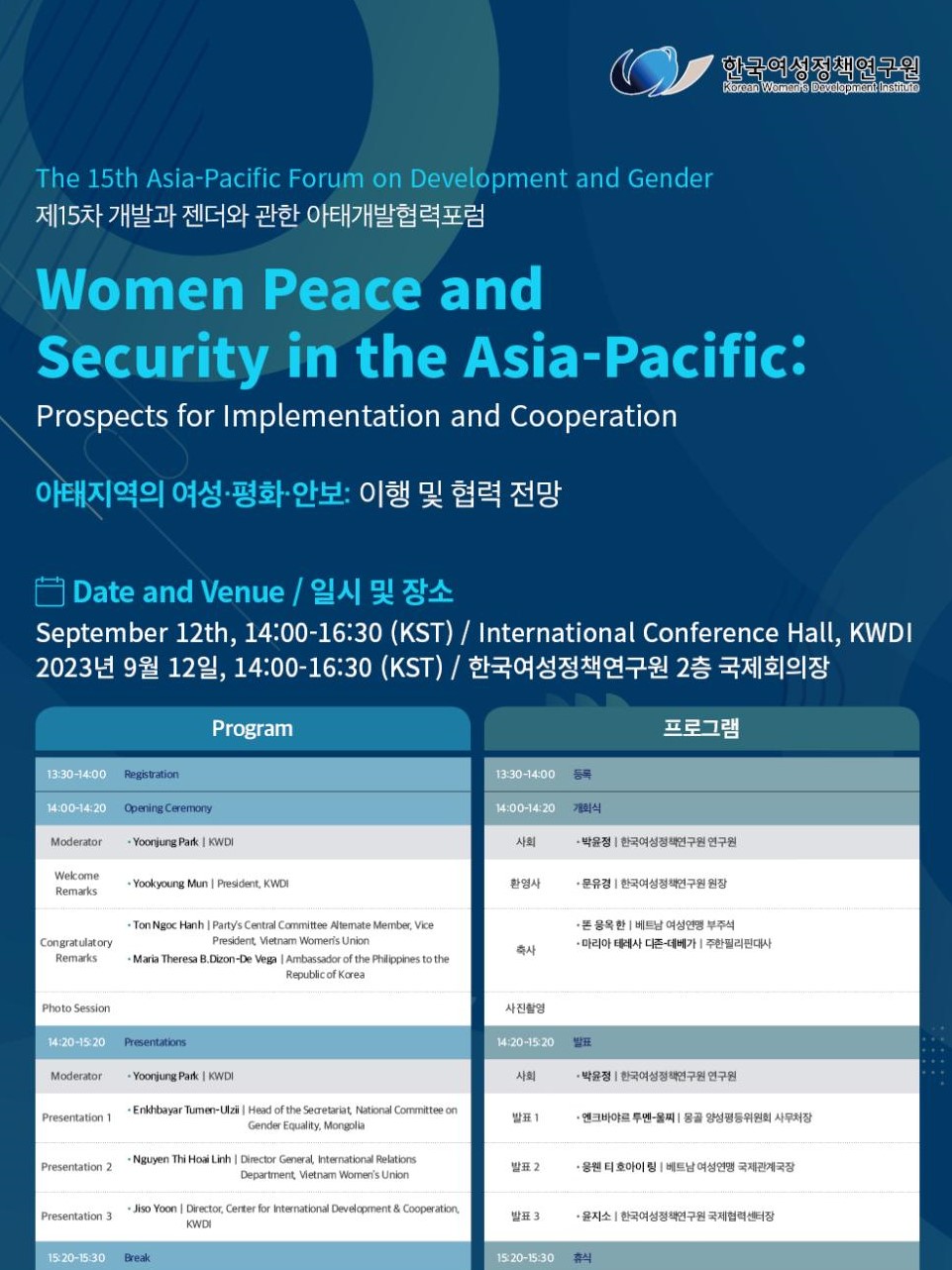[제15차 개발과 젠더에 관한 아태개발협력포럼] 아태지역의 여성·평화·안보: 이행 및 협력 전망