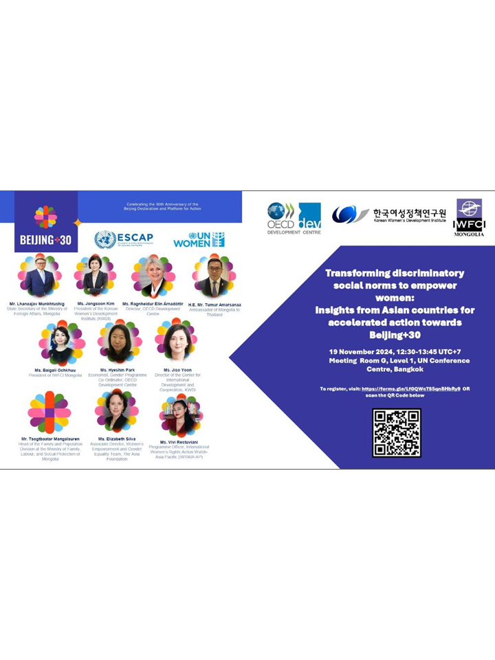[제16차 개발과 젠더에 관한 아태개발협력포럼] Transforming discriminatory social norms to empower women: Insights from Asian countries for accelerated action towards Beijing+30 (여성에게 힘을 실어줄 차별적인 사회 규범의 변화 : 베이징+30을 향한 가속화된 행동을 위한 아시아 국가들의 인사이트)