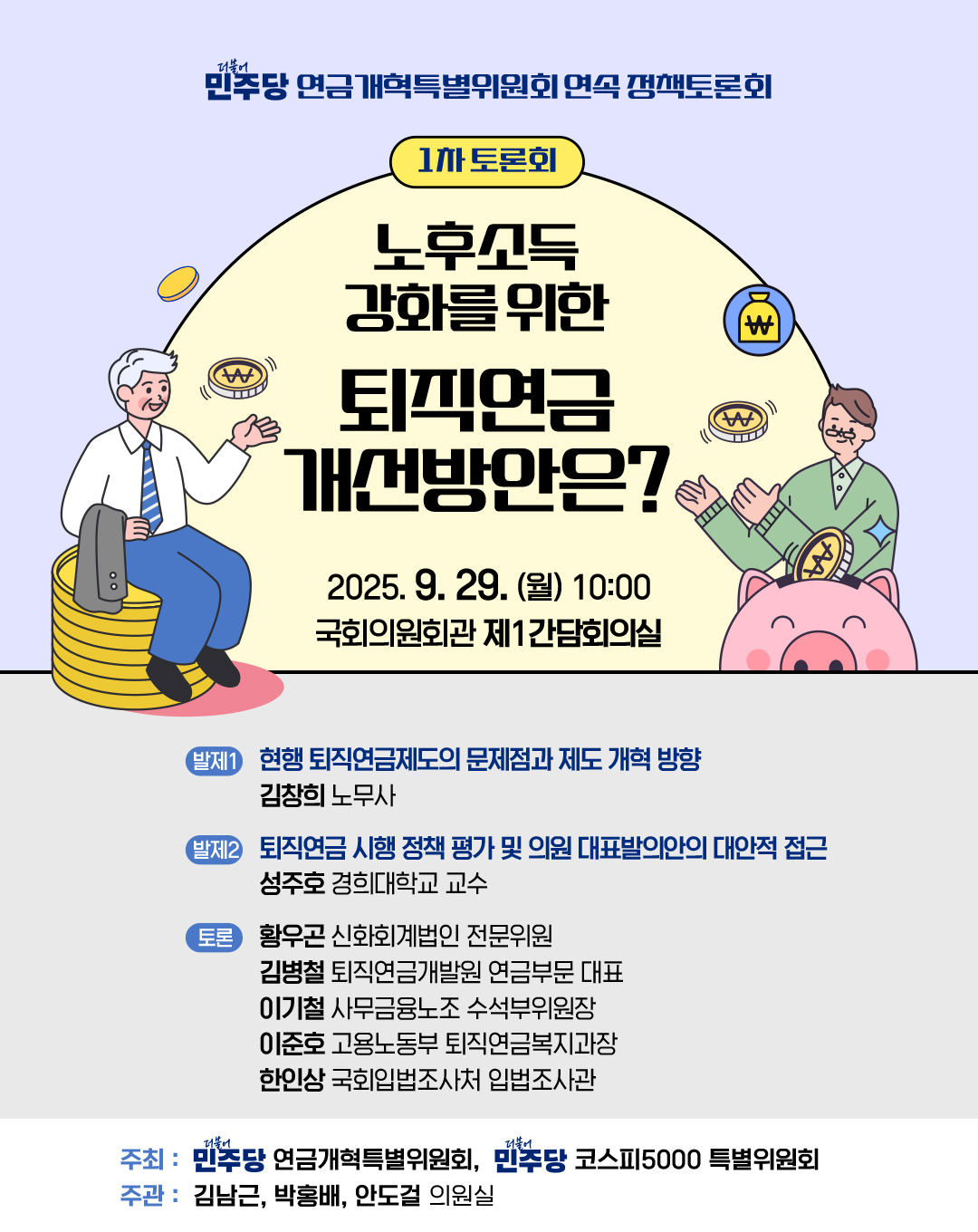[더불어민주당 연금개혁특별위원회 연속 정책토론회 1차 토론회] 노후소득 강화를 위한 퇴직연금 개선방안은?