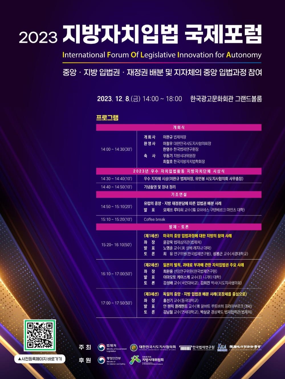 [2023 지방자치입법 국제포럼] 중앙·지방 입법권·재정권 배분 및 지자체의 중앙 입법과정 참여