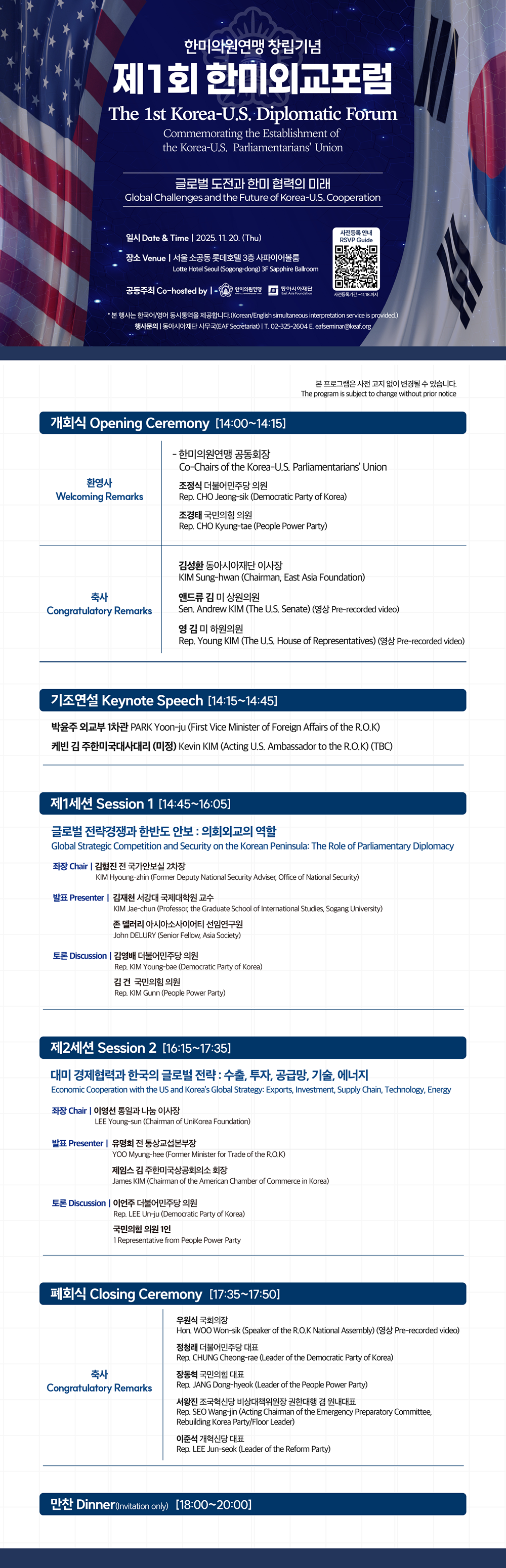 [(한미의원연맹 창립기념) 제1회 한미외교포럼] 글로벌 도전과 한미 협력의 미래