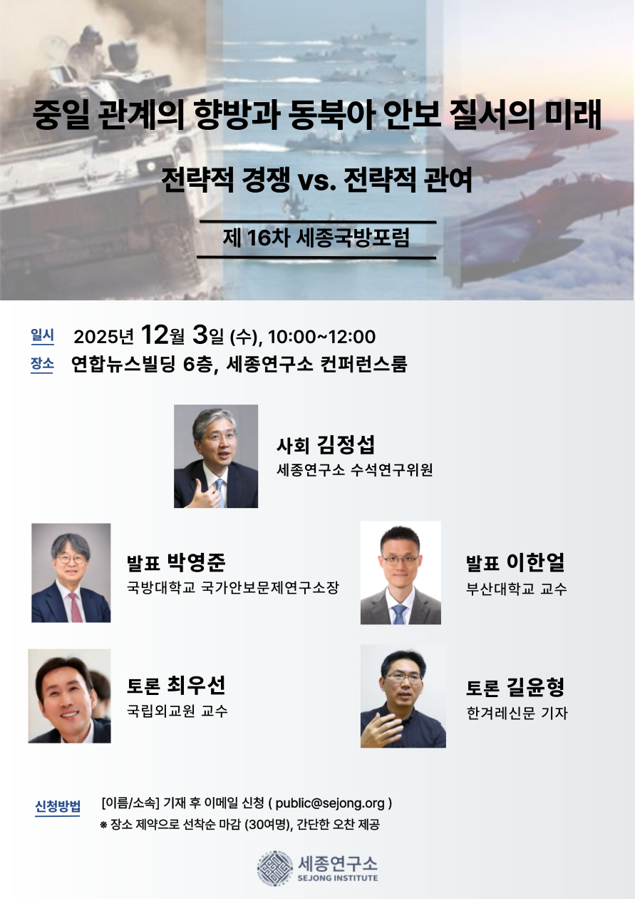 [제16차 세종국방포럼] 중일 관계의 향방과 동북아 안보 질서의 미래 : 전략적 경쟁 vs. 전략적 관여