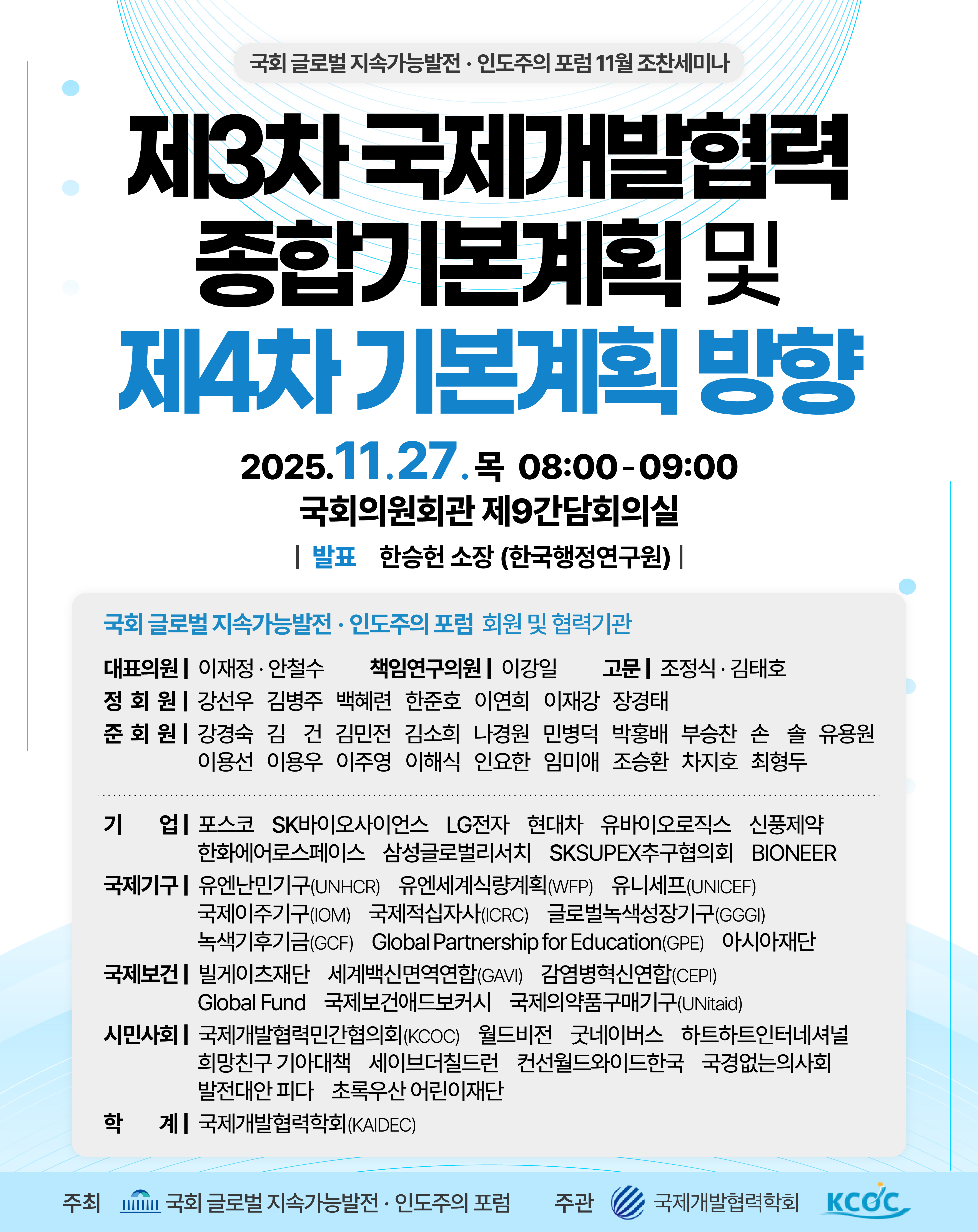 [국회 글로벌 지속가능발전·인도주의 포럼 11월 조찬세미나] 제3차 국제개발협력 종합기본계획 및 제4차 기본계획 방향