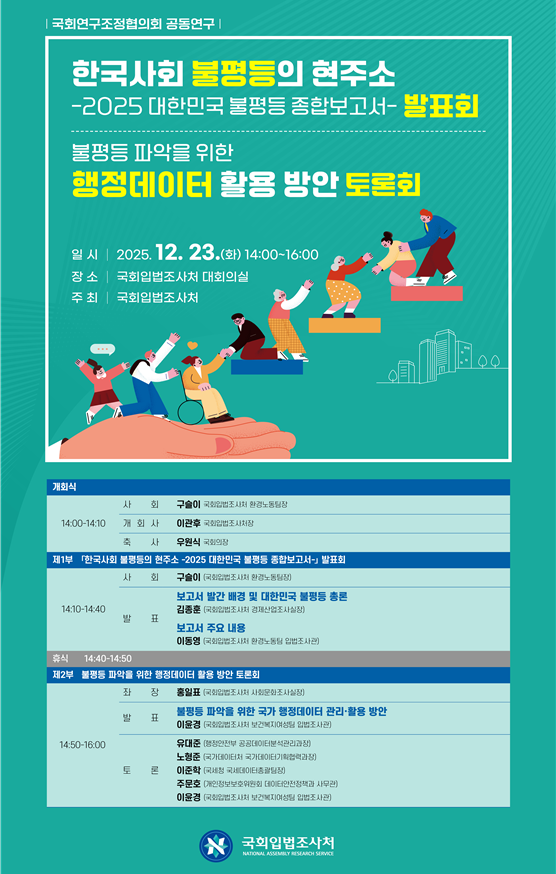 『한국사회 불평등의 현주소 - 2025 대한민국 불평등 종합보고서』 발표회 및 불평등 파악을 위한 행정데이터 활용 방안 토론회