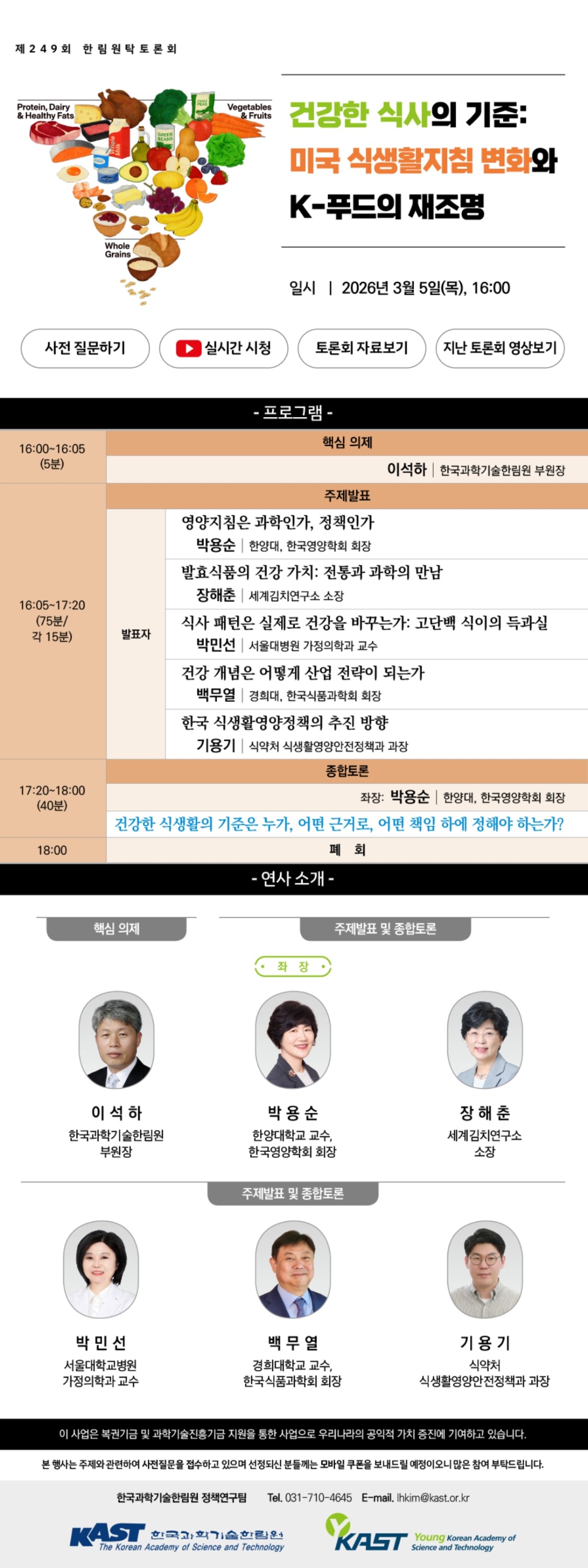 [제249회 한림원탁토론회] 건강한 식사의 기준 : 미국 식생활지침 변화와 K-푸드의 재조명