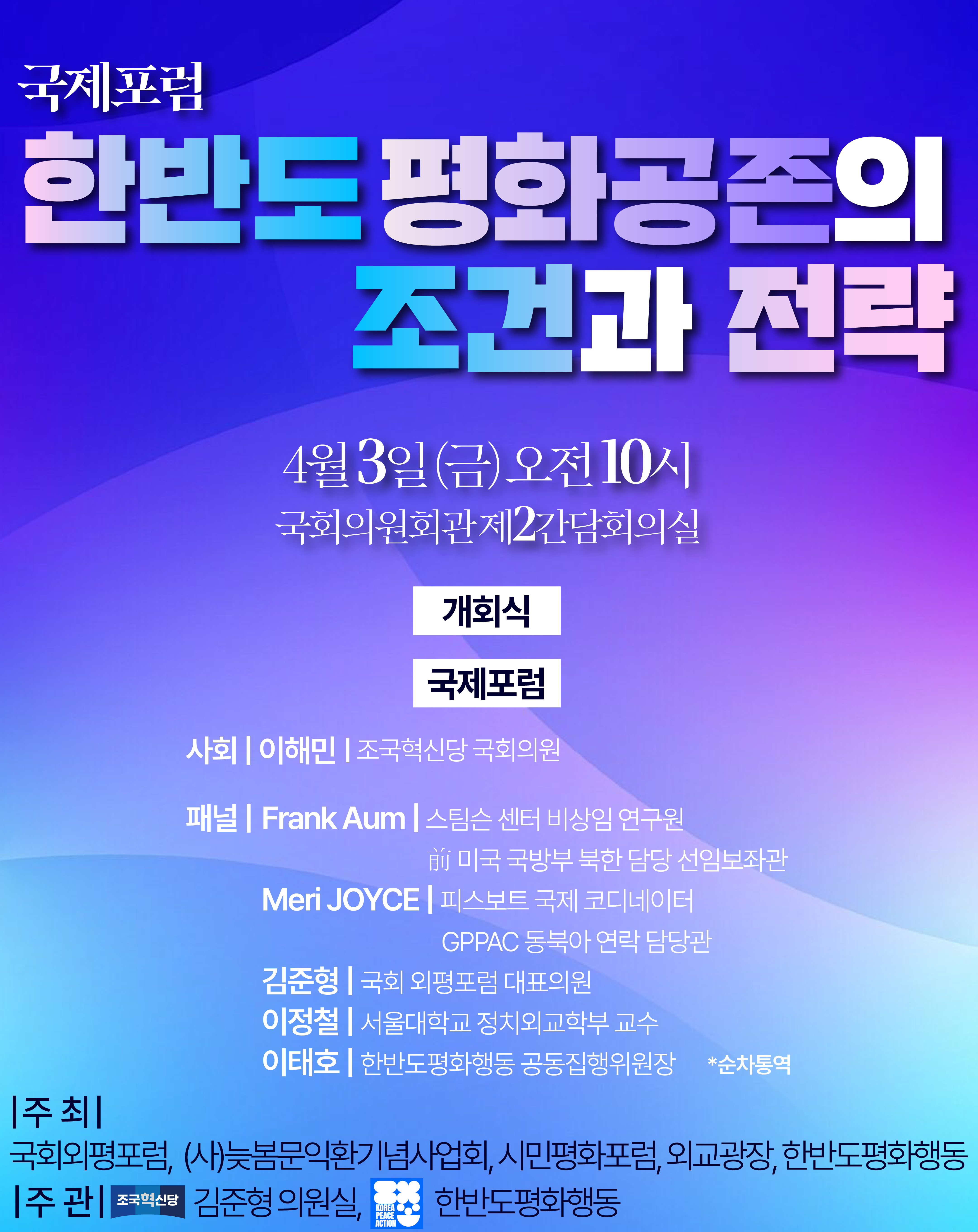 김준형 의원실, 국회외평포럼, (사)늦봄문익환기념사업회, 시민평화포럼, 외교광장, 한반도평화행동